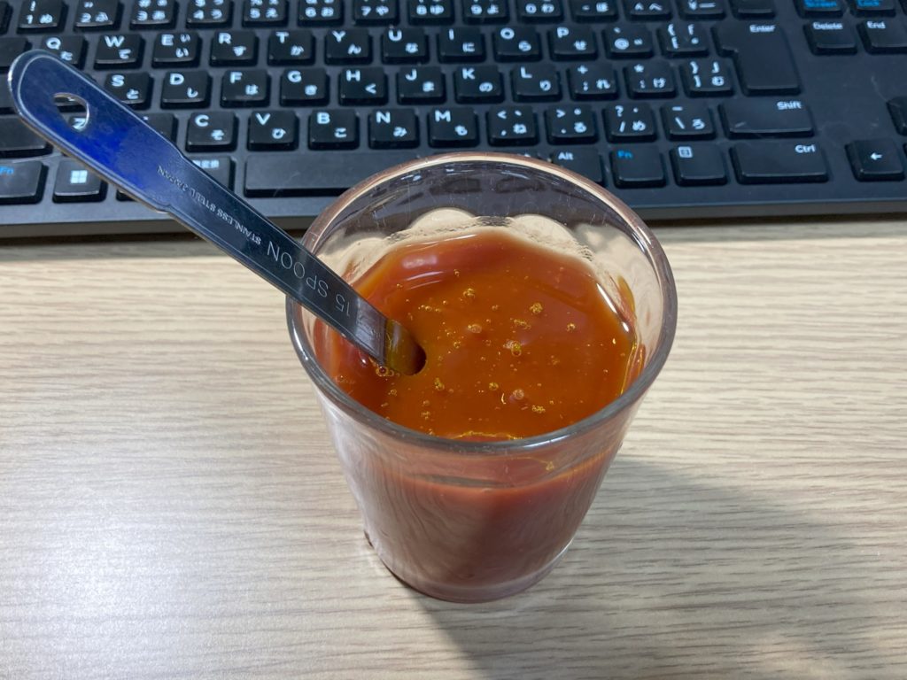 ②のオリーブオイルはアヒージョが好きなのでよく食べますが、更に寝る前のトマトジュースに大さじ一杯(15㏄)入れて一緒に飲むことにしました。