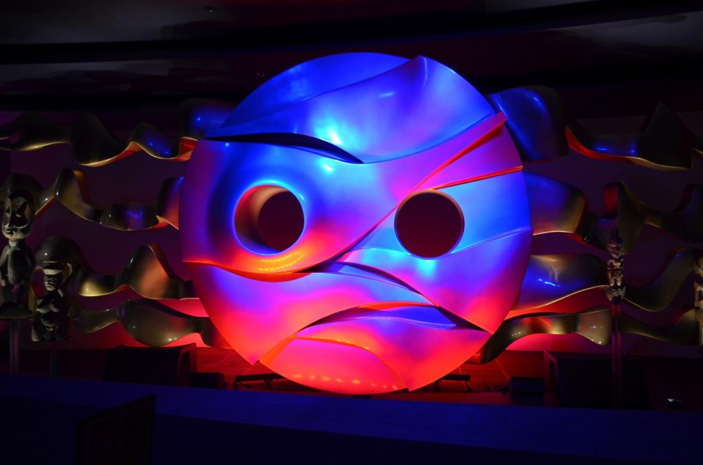 また、第4の顔は内部にあり、地底の太陽と言われています。太陽の塔に入場して最初に入ったところに地底の太陽があり、色々な色でライトアップされており、とても幻想的でした。
