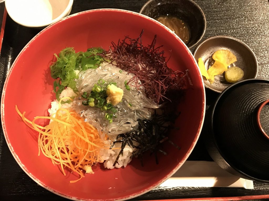 参道の商店街に戻りお食事処を探していると、生しらす丼の看板が目に留まり、「やっぱ、江の島に着たら生しらすだな。」と思い早速入って、生しらす丼を注文しました。他に美味しそうな海鮮丼等有りましたが、生しらす丼はとてもリーズナブルで、甘くておいしかったです。