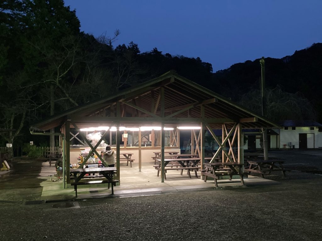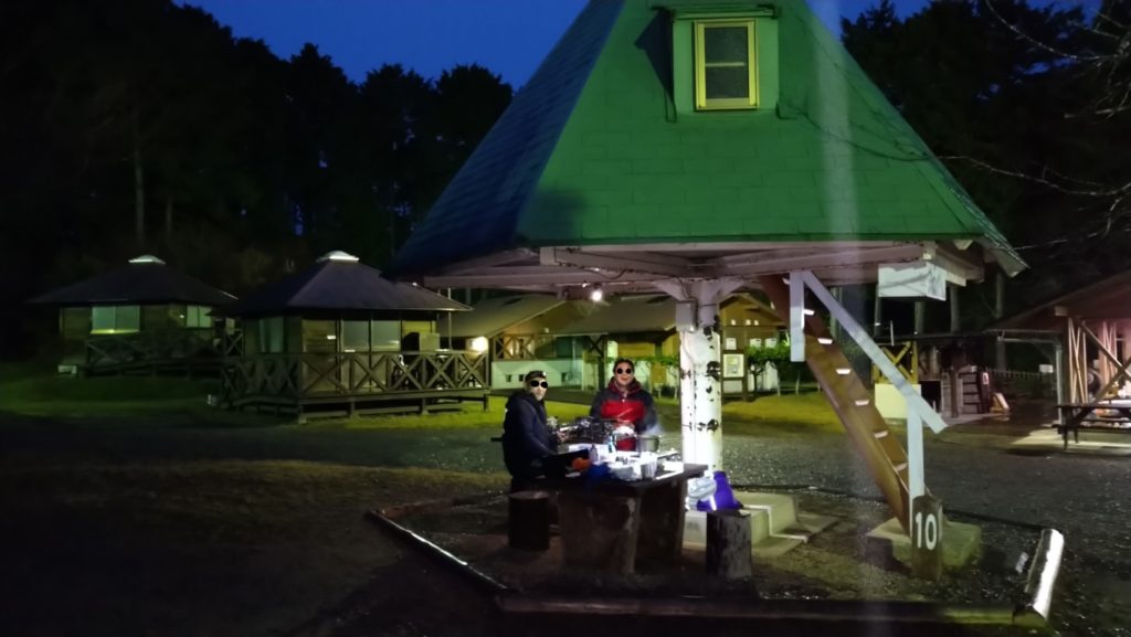 今回は夜雨が降る予報だったことと、クリスマス寒波直前の寒い時期だったため、宿泊者は我々を含めて2組だけでした。