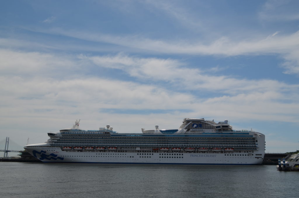 すると向かいの大桟橋に「ダイヤモンド・プリンセス」が停泊していました。