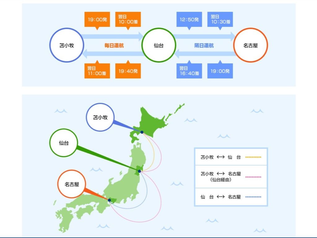 フェリーで北海道に行く航路は7つあります。