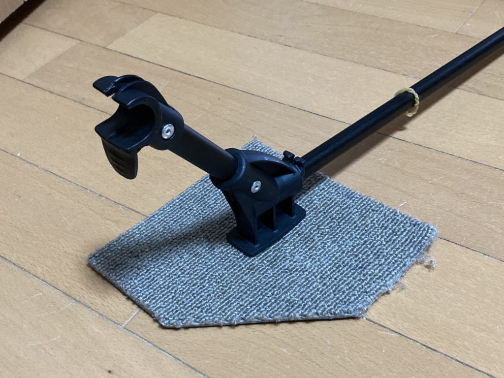 私は100均で買ったタイルカーペットを切ってコットの足の下に敷いています。