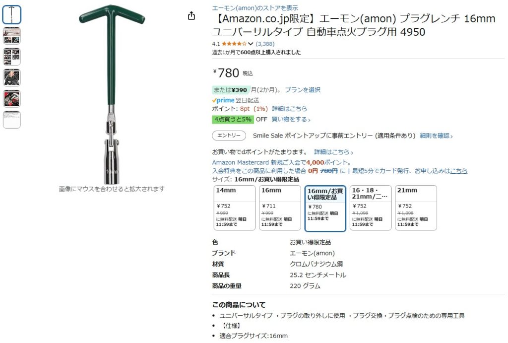 プラグとプラグレンチはアマゾンで購入しました。