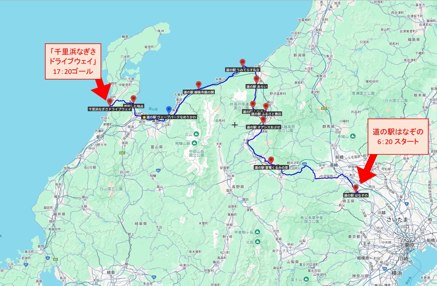 獲得ポイントは、道の駅 ウェーブパークなめりかわ(3ポイント)、道の駅 氷見(3ポイント)、その他の道の駅(2ポイントx7=14ポイント)合計20ポイントとなります。
